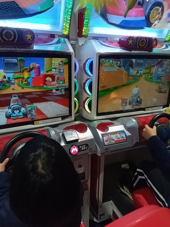 モールに行ったついでです。30分遊び放題+メダル30枚がついた500円でもぐら叩き、マリオカート、太鼓の達人、釣りゲームなどを楽しみました。割とお得でした。