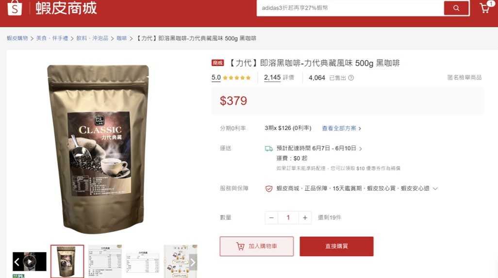 ネット通販で安いインスタントコーヒー500g379元(1895円)を見つけてお得でした。