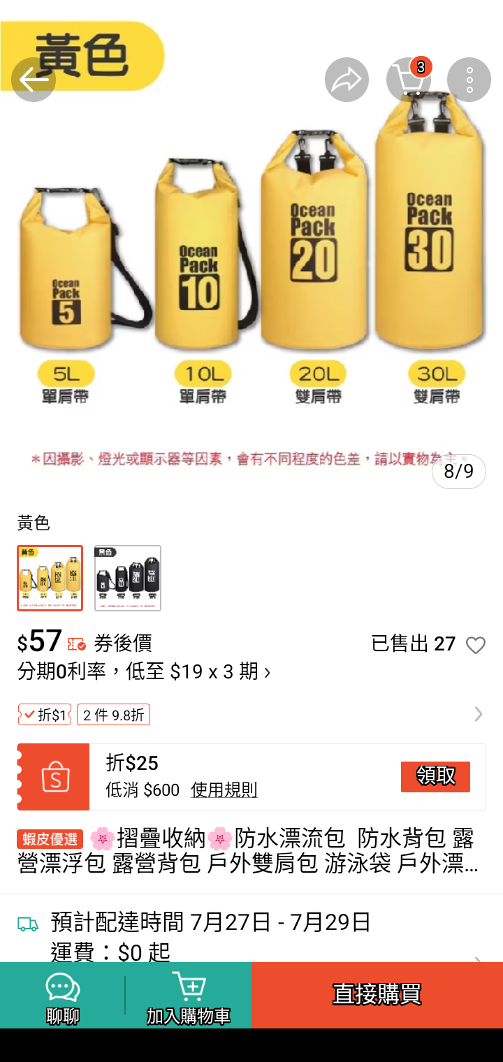 ゴーグルとアームリングです。両方合わせて152元で買えました。ゴーグルは子ども用でしたが大人でも十分使えて水も入らない設計です。アームリングもつければ溺れる心配はないし、背泳ぎもできてしまいます。なかなかお買い得な商品でした。それから水泳バッグも壊れたので防水生地に買い替えました。10リットルで149元でした。最後にシャワーを浴びる時に万が一 水がかかっても大丈夫と喜んでいました。