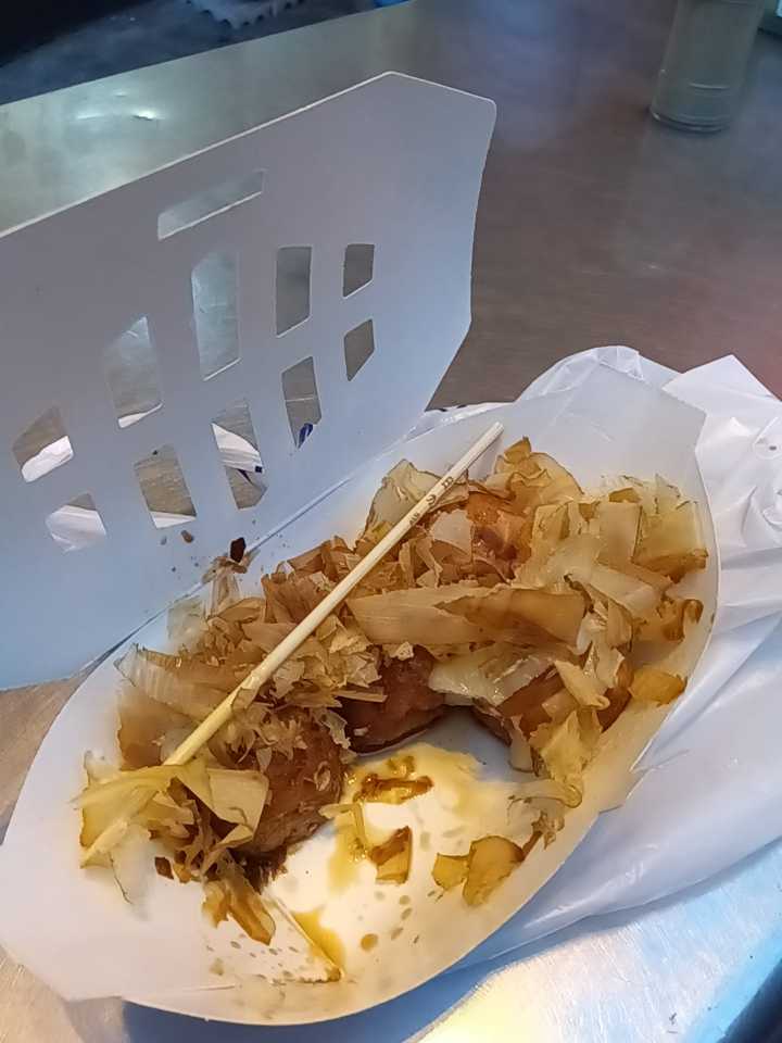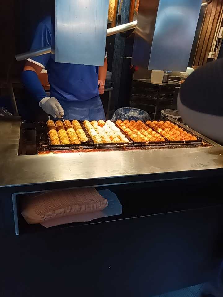 子どもが入り口のたこ焼き屋にくぎ付け。