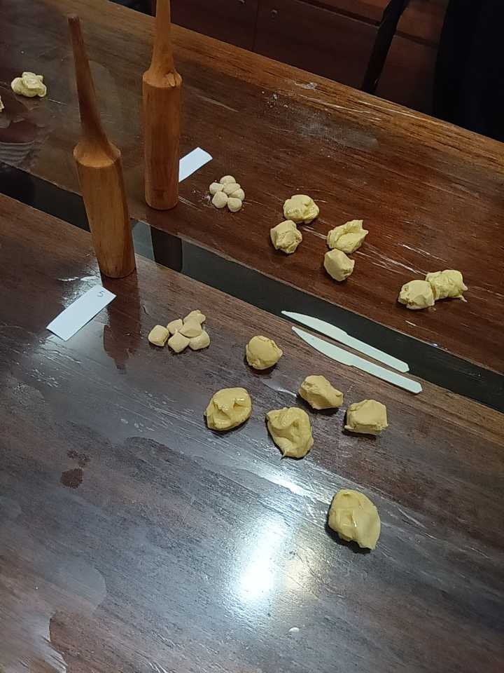 硬さの違う3つの材料を組み合わせながらこねていきます。