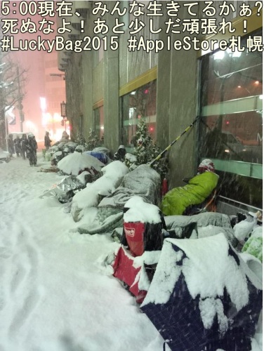 【【画像】 札幌でApple福袋「LuckyBag2015」に並ぶ人たちをご覧ください -痛いニュース(ノ∀`) : ライブドアブログ】【【画像】札幌のApple Storeの並びが吹雪で過酷すぎたと話題。生存確認までされる事態に:T速報】