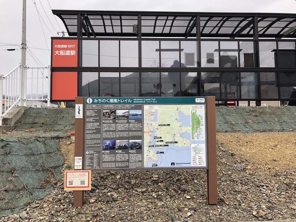 BRT大船渡駅から、気仙沼駅へ向かいます。天気は、あいにくの雨でした。盛〜気仙沼間は、鉄路での復旧は断念されています。BRT=Bus Rapid Transitが利用可能。バスをベースにした交通システムです。大船渡線の線路部分だった場所だけでなく、一般道も走ります。定刻に気仙沼行きのバス=BRTは来ましたね。大船渡駅からの乗客は7名でした。もしバスの乗車定員を超えたお客さんがいたら、どうなるのかしらね。そういうことは滅多に起こらないのでしょうけど。大船渡〜気仙沼間は、ひなちゃん初めてのBRT乗車です。途中の陸前高田では、奇跡の一本松が車窓から見える...との情報があります。どちらの車窓がいいのかしら。たぶん進行方向左側、海側かなと思って、座りました。BRT奇跡の一本松駅もあります。でも、そこからは木の姿は見えないんですよ。車窓に注目してみますと、ああ〜見えてきましたよ。これが奇跡の一本松です。7万本の松の木があった高田松原。津波被害に耐えて、たった1本だけ残った松。たしかに奇跡ですよね。塩害で枯れてしまったとか、周囲を補強したとか...色々テレビでは報道されていました。実際に見たのは、初めてです。防腐処理を経て、今は健在のようですね。本当は、木のそばまで近寄ってみたいところ。雨が降っていて、バスの窓も濡れておりました。今回は残念ながら、車窓からのボンヤリ写真です。隣の建物は、全壊した陸前高田ユースホステルです。奇跡の一本松