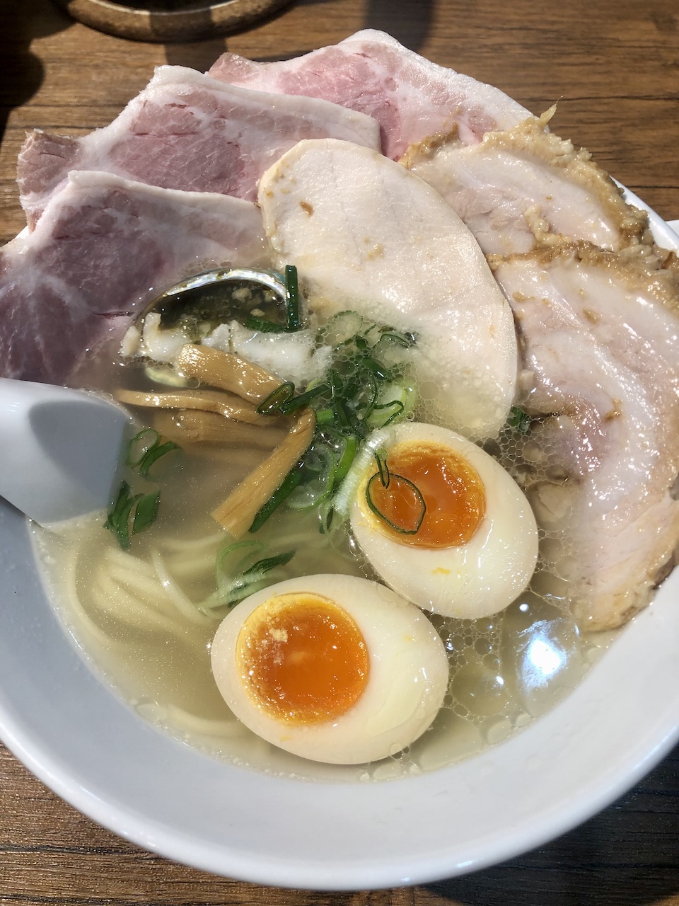 八戸線で久慈、三陸鉄道で宮古、釜石を経由して大船渡の盛へ。BRT で大船渡駅へ。駅からすぐ、貝だしラーメン黒船SECOND。宿泊ホテルの隣です。SP貝だしラーメン塩。穏やかで貝の旨みがでているスープに感激します。チャーシューは3種いずれも厚切り。細めの平麺。味、ボリューム、ビジュアル、すべて絶品でした。餃子はかなり大きく、皮も上手に焼けてて餡がしっかり詰まって食べごたえあり。超優秀店で、当たりでした。大船渡駅のすぐそば・らーめん黒船SECONDキャッセン大船渡。商業施設が集まっています。地元スーパーのマイヤ。地元産のお酒とおつまみでも買って、部屋飲みしよう。りんご屋まちこのアップルワイン。辛口で、美味しい❣️大船渡の山林火災、鎮火宣言が出ました。良かったですね。