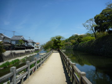 右に濠で、左に船場川です。