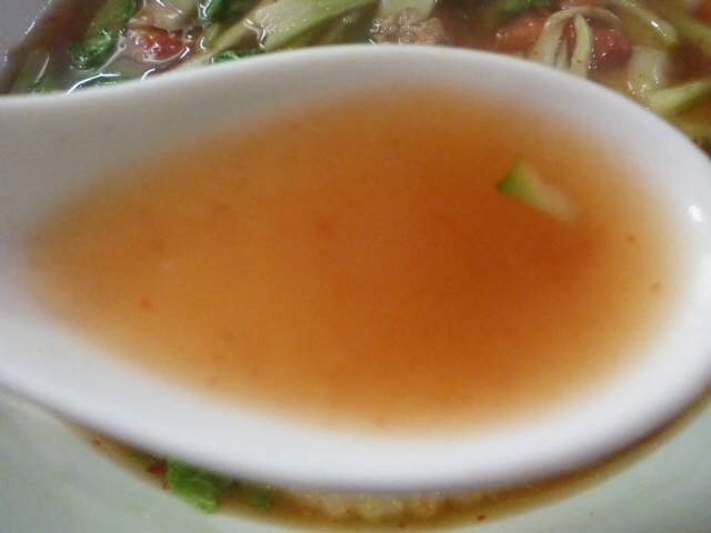 豚骨しょう油ベース、ピリ辛スープ