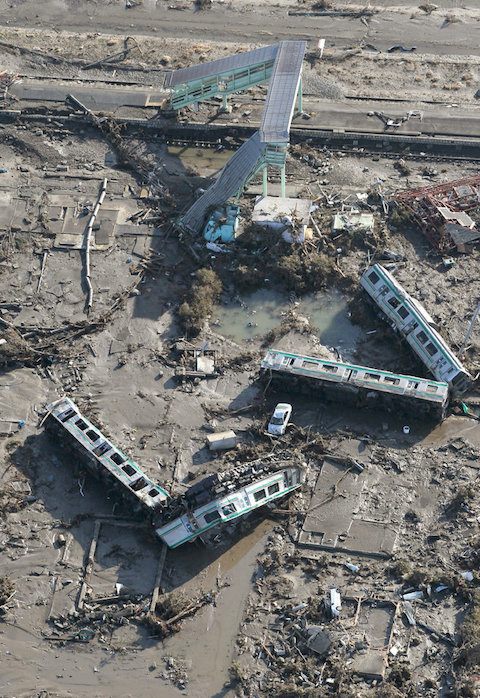 3.11津波直後の新地駅(産経新聞より)