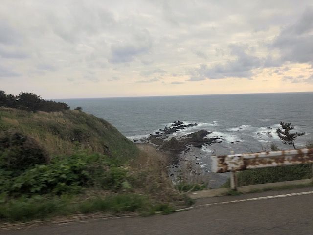 記念碑に戻って5分程度歩くと日本海へ出ます
