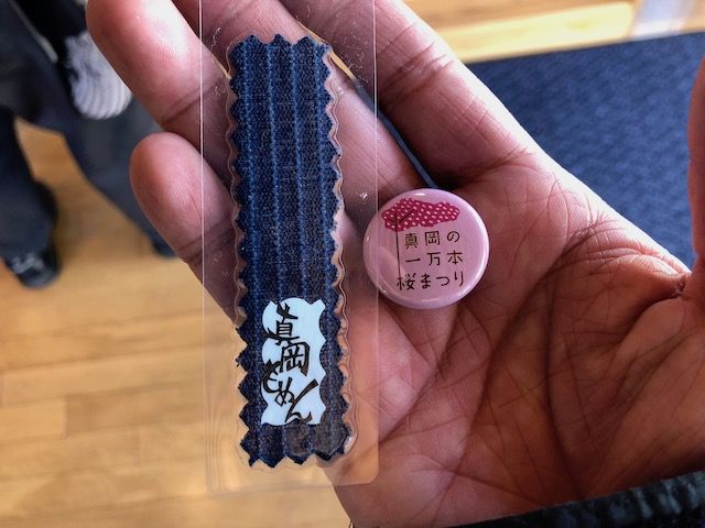 真岡木綿のしおりと缶バッジだって。色々あっても、青を選ぶ。青森人のひなちゃんです。