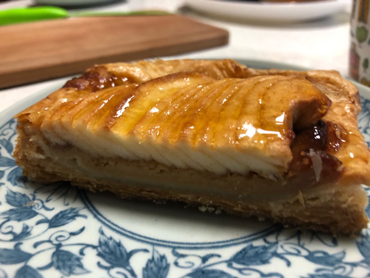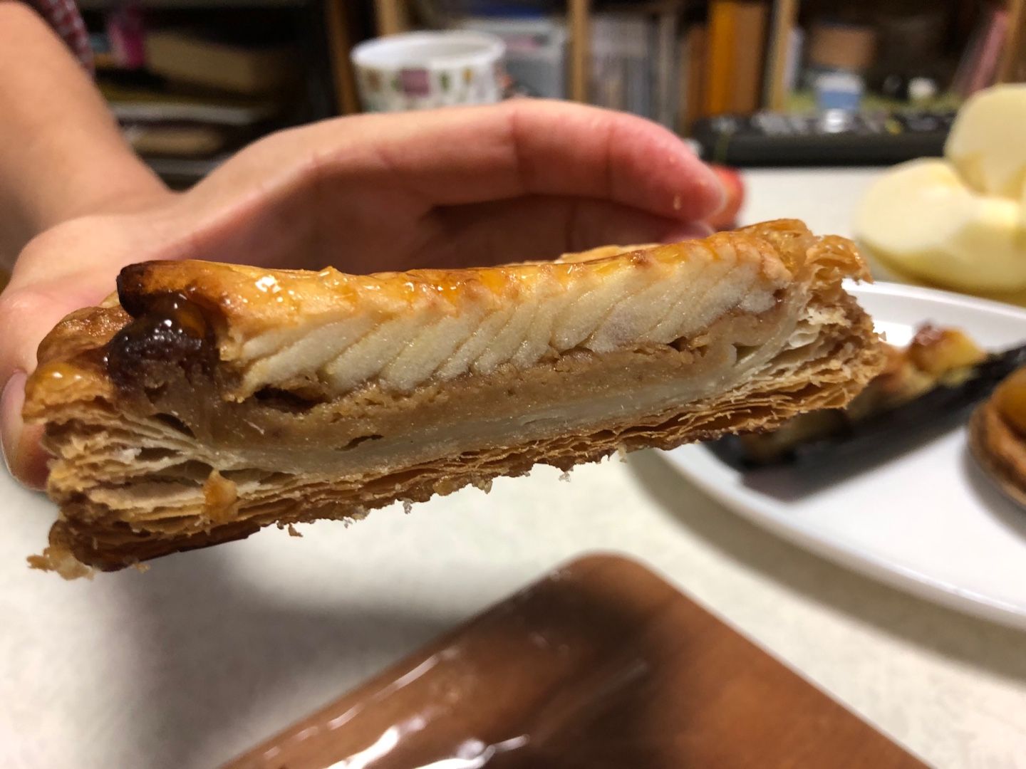 1個320円。りんごの薄切りが丁寧に重ねられています。輝かしいカラメリゼで、シナモンは弱め。