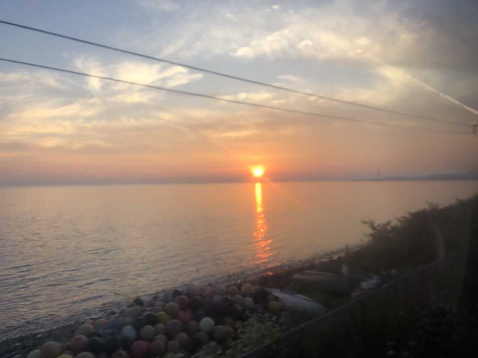 伊達紋別を過ぎると噴火湾の夕日が