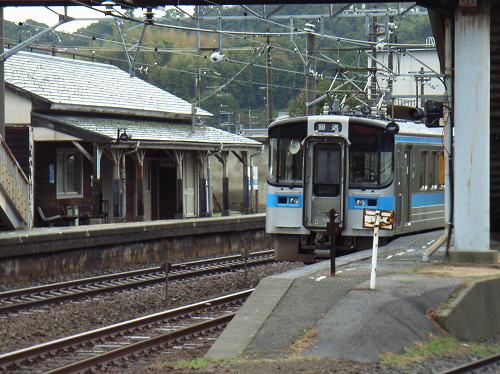 今日,予讃線 波止浜―波方 間で踏切事故のため一時不通になっていました。たまたま近くにいたので波止浜駅に行ってみると,回送幕の下り列車が入ってきて止まっていました。