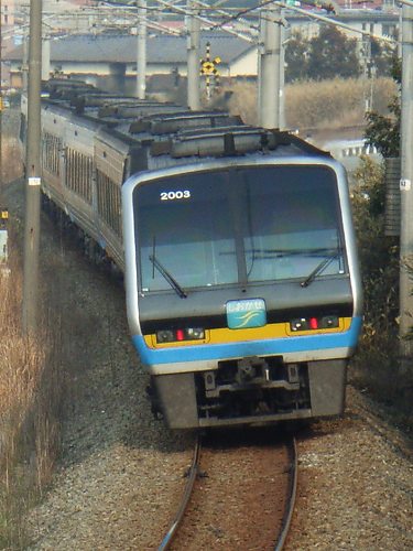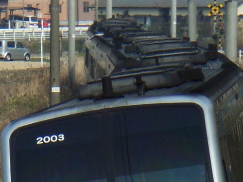 2000系 2003アンパンマン列車でしたが,後撃ちで撮ると最後尾は標準色の2003でした。残念ながら計算不足で電柱が掛かってしまっていました。屋根のすす黒さを強調したいと思い,画質は諦めてデジタルズームを使い35mm換算約300mm焦点距離にて撮影しました。2000系 20032007/2/7波方-波止浜