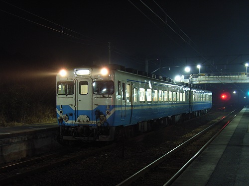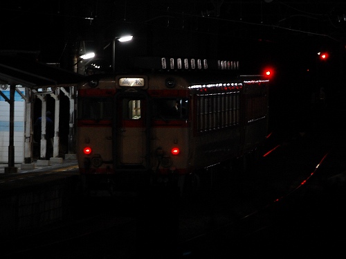 急に風が吹き始めてこの有様です。見事にブレてしまいました。暗いのは雰囲気を出すために意図的なのですが・・・,残念でした。キハ65 342007/2/28伊予亀岡