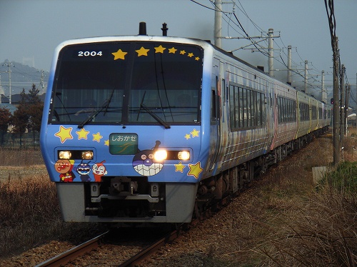 昨日に引き続きアンパンマン列車です。車番は見えませんが最後尾の車両(後撃ちのため)のドキンちゃん号が2005です。撮影したこの列車にはアンパンマン列車ではない通常色の車両も含まれていて少し統一感に欠けています。(画像は再掲)2000系 20052007/1/19波方-波止浜明日は2000系 2006をアップする予定です。