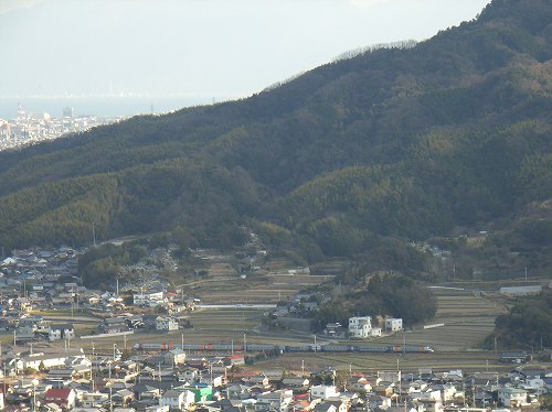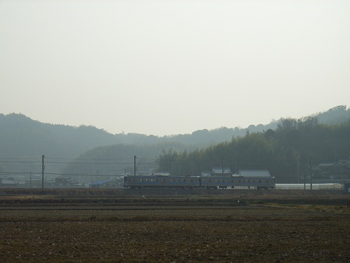 近場の俯瞰のできるポイントから撮影。あまり光線条件の良い場所ではないですが,いいアングルを模索中。8両編成が隠れずに長さが強調できるところは・・・と探してます。次の画像ではこの時間半逆光になりますが,アンダー目の露出でいい雰囲気が出そうです。上の画像はいずれも下記日付および区間にて撮影。2007/1/31波方-波止浜