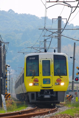やっとこれが撮れました。カレーパンマン号 2107カラーブースタ掛けて補正していますが,それにしても凄い色ですね。21072007/5/9波方-波止浜