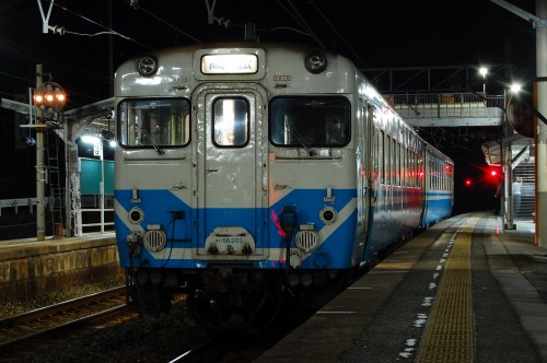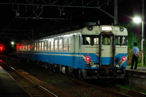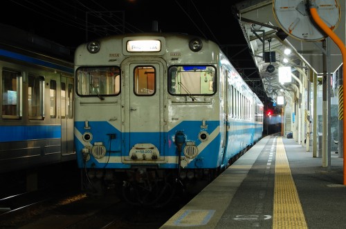 さすがに晩の9時を過ぎると,駅には人がほとんどいなくなります。この後まだ約3時間に及ぶDCの夜の旅を楽しみたい気持ちではありましたが,ここでこの列車から降りて折り返しました。キハ58 203/キハ65 412007/8/20伊予西条