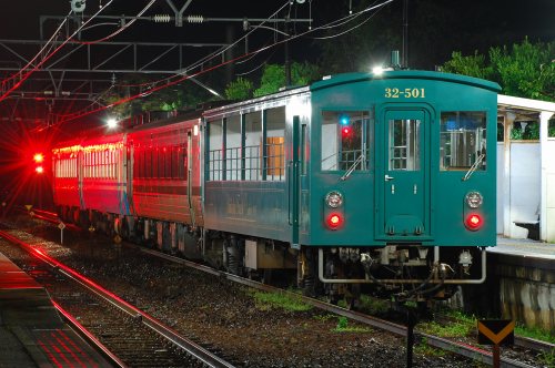 何度も撮っているはずなのに未だあまりまともに撮れていないトロッコ回送。情報によるとこの日の175Dが紅白編成のキハ58,186Dがトロッコ回送付きの予定でしたので,伊予寒川の交換を撮ろうか迷っていましたが,雨が降っていたため結局諦めました。後で聞いたところダイヤの乱れのため交換シーンの撮影は難しかったようですね。キハ58 301/キハ65 41/キハ185 20/キクハ32 5012007/9/16伊予桜井