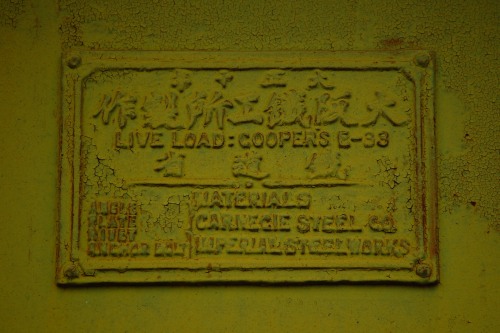ちょっと息抜きにこんなものを。鉄橋の名称は確認しませんでしたが,愛媛県西条市の中山川に架かる予讃線の橋梁の南側すぐのところに掛かっている鉄橋にあった銘板です。鉄道省時代のものであることがお分かりいただけると思います。大正十年(1921年)とありますので,鉄道院から鉄道省になった翌年に製造されたことになります。当時の予讃線(讃岐線と呼ばれていた)の西端は西条で,このあたりは大正十二年(1923年)に開通したようです。製造から86年を経た現在も遺物としてではなく,現役としてレイルを支えているのはすごいですね。