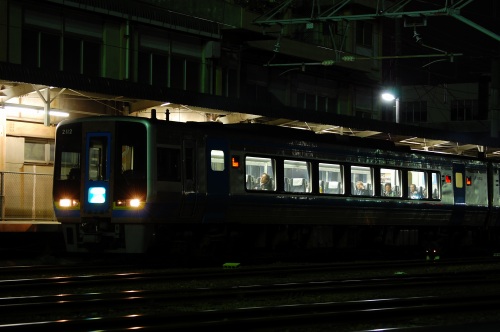 始発駅を含めるとここは40番目の駅。深夜の静けさの中を,終着駅向かって走り去りました。キハ65 34/キハ58 2932008/1/18伊予富田