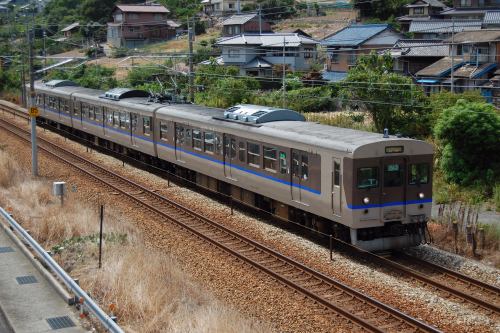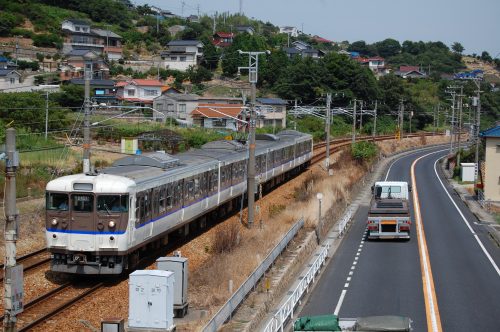 同じ115系でも,見慣れぬ顔は違和感を覚えます。115系2008/8/22糸崎-尾道焦点距離:57mm(35mm換算),絞り:F5,シャッター:1/1000sec,ISO:200