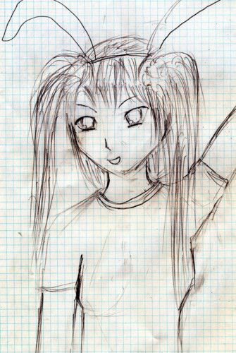 なんだかよくわかってないけど描いてみたw髪は適当にw耳はうさみみでw着てるのはTシャツ?ポップンそんなにやったことないから全部ディフォルメでwってかこのうさぎの名前も知らない…(*´д`*)今日はイラつくことがあったイラつく奴からパターン教えてってメールが来て作りたいものがわからないデザイン画をちゃんと描け!ってまぁいいや…考えるだけでイラつくからあんまり言うまい