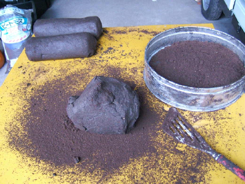 ペントナイト、田土、クンタン、腐植、ビートモスなどをブレンドし練り上げて小指の頭ぐらいのの大きさにする。