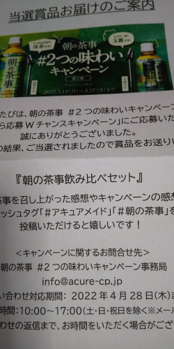 先ほど、届きました。これは伊藤園なんだよ。お茶なんと12本今日は暑いから嬉しい〜忙しい私に陣中見舞いみたい。☺️