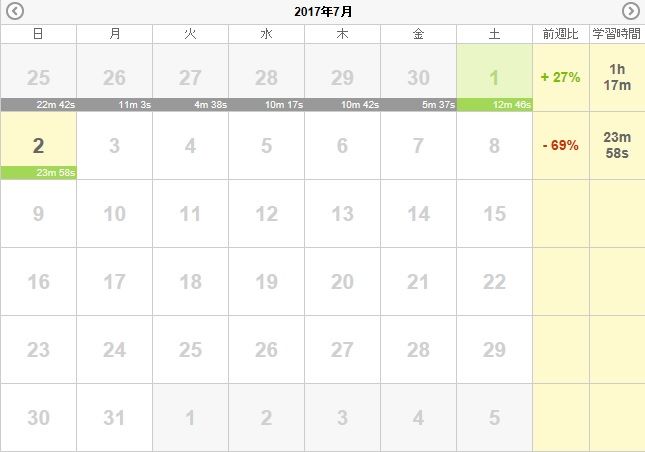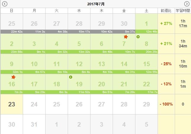 まずは、先週の勉強記録から。7月17日(月):ラジオ95分7月18日(火):ラジオ120分・聞き流し80分7月19日(水):ラジオ120分・聞き流し80分7月20日(木):ラジオ120分・聞き流し80分7月21日(金):ラジオ120分・聞き流し80分7月22日(土):ラジオ130分・留学40分・予習復習60分7月23日(日):予習復習60分小計:1185分+Y61分=1246分累計:1246分+23493分=24793分※今までの総計15295分(2013年11月~2014年2月)+5043分(2月~3月)+4933分(3月~4月)+8072分(4月~5月)+7919分(5月~7月)+15240分(7月~9月)+8793分(9月~11月)+20424分(11月~2015年2月)+5413分(2月~3月)+37246分(3月~9月)+35761分(9月~2016年3月)+70454分(3月~2017年3月)=234593分来月の基礎英語のテキストが発売中!8月は、4~7月の復習を実施。一気に挽回する良い機会だ!!更に今年は、ワークブックも発売している。今まで頑張って来た人も、これから頑張ろうと思っている人も、今がチャンス!!NHK ラジオ 基礎英語1 CD付き 2017年 08月号 [雑誌]NHK基礎英語1書き込み式ワークブック夏の総まとめ編 16日間完全マスター! (語学シリーズ) [ 田中敦英 ]NHK ラジオ 基礎英語2 CD付き 2017年 08月号 [雑誌]NHK基礎英語2書き込み式ワークブック夏の総まとめ編 16日間完全マスター! (語学シリーズ) [ 西垣知佳子 ]NHK ラジオ 基礎英語3 CD付き 2017年 08月号 [雑誌]NHK基礎英語3書き込み式ワークブック夏の総まとめ編 16日間完全マスター! (語学シリーズ) [ 投野由紀夫 ]NHKラジオ 基礎英語1 2017年8月号 [雑誌] (NHKテキスト)NHK基礎英語1 16日間完全マスター! 書き込み式ワークブック―夏の総まとめ編 (語学シリーズ)NHKラジオ 基礎英語2 2017年8月号 [雑誌] (NHKテキスト)NHK基礎英語2 16日間完全マスター! 書き込み式ワークブック―夏の総まとめ編 (語学シリーズ)NHKラジオ 基礎英語3 2017年8月号 [雑誌] (NHKテキスト)NHK基礎英語3 16日間完全マスター! 書き込み式ワークブック―夏の総まとめ編 (語学シリーズ)
