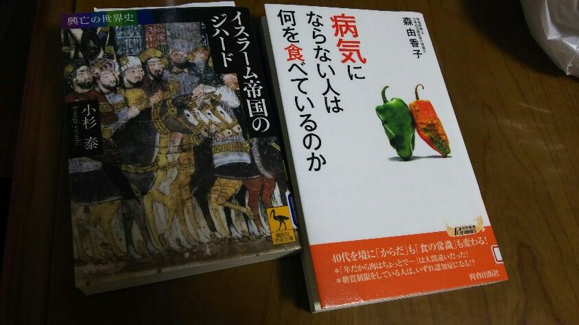 今回の本はこちら。いつもの?歴史ものはさておき、ちょっと趣向を変えて、健康になるための食事についての本を読んでみた。概ね、今のままで良さそうだと再認識。結局、食事の行きつく所は、バランスよく、好き嫌いなく食べる事だ。興亡の世界史 イスラーム帝国のジハード (講談社学術文庫)病気にならない人は何を食べているのか (青春新書プレイブックス) [ 森 由香子 ]病気にならない人は何を食べているのか (青春新書プレイブックス)