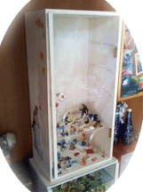 おはようございますジャジャーン!!ついに完成!!実はお盆前からコツコツと、コーンやムサへ足しげく通い、こちらの棚を作っておりました。本日ニスを塗って完成です中には大好きなガラス細工がたくさんつまっております集めすぎてそろそろ入りきらなくなってしまったので、作りました。小学生の時だったか、お父さんと一緒に棚を作ったのがあったので、それも色を塗りなおしてリメイクガラス細工も一個一個キレイに磨いてピカピカ種類は全部で83種類ありました。ドアを開けるとこんな感じ側面にはルノワールの絵を張ってみましたちゃんとドアノブも付いてますまーだまだ集め足りないですね。楽天でもないか探していたら・・・同じものがありました硝子屋さんの”ベンチに座るラブペア ¥714”あたしこれ、どこで買ったんだっけかわいい硝子細工はフリーページでも紹介中お部屋のちょっとしたインテリアにもオススメですよ(*^^*)