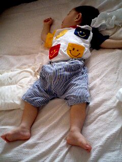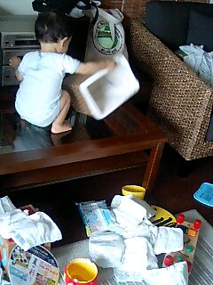 最近の羽根くんのマイブームはのぼることピアノの上だけではなくソファ、センターテーブル、そして気がつくとベッドにまで「うんしょ、うんしょ」とのぼってます保育園でマットが積んであってそれを一生懸命のぼったり降りたりしてたからそこで鍛えたみたい(苦笑)本人は楽しそうなんだけどママはますます目が離せない…くつろいでます今日は七夕さま去年は羽根くんを出産して実家に戻ってて姉と二人で七夕飾りを作ったっけ。今年も笹を買ってきて折り紙チョキチョキ作ってたら帰宅したパパも手伝ってくれました笹の葉さらさら去年も願ったよな…羽根くんの健やかな成長を願うと共に