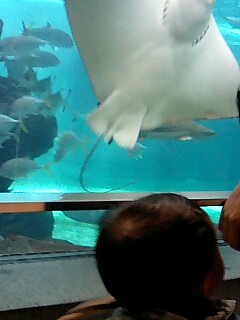 週末、須磨海浜水族園へ行ってきました夏休みも終わったというのに、すごい人・人・人甘かった~・・・。気を取り直して、いざ!水族館へ。ほらほら、羽根くん!エイだよエイ!羽根くん、無反応~ベビーカーに乗ってるせい?と靴を履かせて床に降ろしてみたらお魚には目もくれず嬉しそうに徘徊~その後ラッコには少し興味を示したもののママの好きなペンギンにもあまり興味なし・・・う~ん、まだ早かったか。。。でもイルカのショーは観客と一緒になって拍手(観客の拍手につられて拍手?)グズらずおとなしく見てたので「大きなもの(ラッコ、イルカ等)」には反応するみたい。水族館を出て、須磨の海岸にちょっと寄り道すると・・・羽根くん、今日一番の笑顔で走り回る!羽根くん、今なによりも「あんよ」が楽しくてしょうがないみたい。特に砂の上はサクサクしてて楽しいみたいもうすぐ秋公園でたくさん「あんよ」しようね。