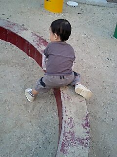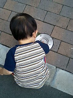 何だかスッキリしないお天気羽根くんの風邪もなかなか完治、とまではいかず、スイミングもお休み。。。でも本人は元気元気!なので毎日ちょこっとでも散歩に出るようにしています。今日も午前中にマンションの敷地内を散策。管理人さんに愛想を振りまいて、それから近所の露店の八百屋さんへ。この前は露店でバナナ1本サービスしてもらった羽根くん今日もしばらくザルを振り回して遊ばせてもらいました。しゃがんで羽根くんの目線で露店を見るとバナナ、じゃがいも、レタスにキュウリ・・・いっぱい並んでいて子供心にすごく面白いだろうなぁ、って改めて感じました。小さなマンホール、こういうの気になるんだよねぇ昨日マンションの敷地内を散策していたら小学1年生?ぐらいの女の子二人が嬉しそうにやってきて羽根くんの後をついてまわる。ほっぺを触ったり頭をなでたり、興味津々。女の子はやっぱり世話好きなんだろうな~。ちなみに羽根くんは女の子達は全く眼中に無いようでマイペースであんよし続けてました階段も昇れるよそういえば、保育園の育児教室でホールを覗きに来た年長さんの園児くんが羽根くん達(4ヶ月~1歳半)を見て「うわぁ~キューピーがいっぱい!」ってつぶやいてすっごく面白かった(笑)そうかーキューピーちゃんかぁ(笑)思わず♪た~らこ~、た~らこ~、た~っぷりたらこ~♪って歌いそうになったよ