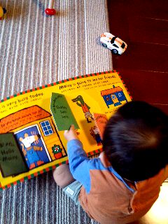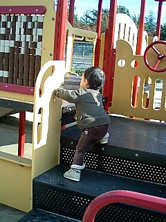 またまた久々の更新ですー。羽根くん、早くも1歳4ヶ月に突入しました体重9.5kgぐらい?身長78cmぐらい?ベビー用ブランコパパがかなり揺らしたんだけど大喜び。食欲旺盛1歳児とは思えない食べっぷり。相変わらずバナナと牛乳が大好き。自分が食べ終わってもパパとママが食べてる物をねだりまくる。おかずは味が濃いので白米だけ与えるとそれでも満足らしい。要はパパママと同じ物が食べたいんだよね。滑り台を逆走するのが好き【言葉】パパママの言った言葉の音を真似して発するように。ママが思わず「あららら~」と言ったら「アラララー」ママがあくびをしたら「ファファファ」お下がりで貰った「トミカ大百科」トミカのあらゆるミニカー等が載っていてまだ意味は解ってないけど羽根くんは「読んで」と持ってくる。各ページにタイトルが付いていて「工事現場で大活躍!」だとショベルカー等が。「とおくへ行こう!」だとRV車が載っている。そして消防車が載っている「緊急出動だ!」のページ。「緊急出動だー!」と読んであげると羽根くん、「キン●☆%#ダー!」と真似をする!絵本「きんぎょがにげた」も逃げた金魚の絵を指差すようになりました!(後半難しくなってくると一生懸命捜してる)今までも他の人に愛想は良かった羽根くんですが、仲良しダイくんのママに飛びつくことも。あんよも、もう小走りです