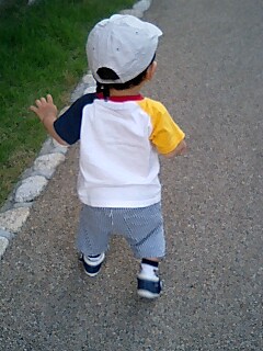 最近の羽根くん、夕方のお散歩が日課(今日は雨で行けなかったけどね)羽根くんも外に出るのが楽しみらしく、ベビーゲートを開けると羽根くん、玄関に直行!自分の靴を持って「んーんー」とママに訴えてくる。同じ時間帯に散歩してる仲良しのダイくん、1つ年上のカツミくんに会うと、そのまま一緒に散歩。特にダイくんとはお互いを見つけると「あーあー」と指さしながら近づいていって触れ合うことも(笑)羽根くんの散歩は寄り道だらけ。マンションの敷地内をウロウロどうにか敷地外に出ても、マンホールを触る、もと来た道を引き返す、一戸建ての家の門に突進、ガレージをバンバン叩く靴が嫌ですぐ脱ごうとする、地面に座り込む、また引き返す・・・車や自転車等も危ないので抱き上げてはあんよ、あんよしては抱き上げる、の繰り返し。散歩して疲れたら夜グッスリ寝てくれるかな~と期待してるんだけどママの方が疲れてグッスリですわ(苦笑)先日転んで鼻を強打しました・・・昨日の散歩中、道のど真ん中で黒猫に会いました。すごく人懐こくて全然逃げないでじ~っと座ってる。こんな間近で猫を見るのは、羽根くん多分初めて(?)どうするかな~?と思ったら「あっ!あっ!」と興奮気味に声を出しながら近づいていき、全く躊躇することなく体やしっぽを触りに行きました!「にゃあにゃだよ~」とママが言うと「にゃあにゃ」とつぶやきながら猫の周りをグルグル。猫の方は羽根くんに興味なさげで、羽根くんが一生懸命アピールしてて笑えました(顔が映った写真しかなくてアップできないのが残念)空飛ぶカラスを見ては「あっあっ」夕暮れに白いお月様が出てくると「あっあっ」バスが通るとじ~っと熱い視線を送る。何もかもが新鮮で、好奇心いっぱいだね!