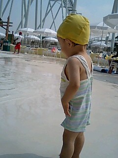 パパも夏休みに入り、まずはプールに行こう!ということでエキスポランド・カリビアンリゾートに行ってきました。去年すごく混んでいた、という噂を聞いたので9:45の開園に合わせて出かけたら「混雑が予想される為、本日9時開園」の看板。やられた・・・入り口でベビーカーを預けて羽根くんはママと女子更衣室へ。思ったより広く、余裕で着替えられる。が、当然のことながら羽根くん本日も徘徊スイミングの更衣室と違って広いから迷子になっちゃうよー結局泣き叫ぶ羽根くんを足で押さえ込みながら着替え。。。さてプールの方は・・・子供用の浅いプールは思っていたよりも広くて、小さな噴水や小さな(ホントに小さな)すべり台もある。おまけに結構空いてる!運良くパラソル&チェアも確保でき、さぁ羽根くんプールへ!ドキドキ(親もドキドキ)結構楽しそうに見えます?でもさっきから全然水に入ってません(笑)そしてクルリと向きを変えて脱走おいおい今日もかいパパも一緒に入って遊んだりすべり台にも挑戦してみたりしたけれど羽根くんの反応イマイチ・・・。それじゃ、流水プールに行ってみよう!ママが抱っここれならスイミングと一緒だし、ママが一緒だから楽しいねこの後スイミングで使ってる腕浮き輪を付けてユラユラしたり、高い高いしたりしながら何周か楽しみました。流水プールといえば・・・流れを作る為の排水口が何箇所もあり、柵はしてあったけど、その部分ではものすごい流れが起きていて、ちょっと怖かったです。。。流水プールの広さは、まぁこんなもんかな?スライダーやすべり台もありました。(でもすべり台は7歳以上~だった)水が溜まると一気に30tの水が落ちてくるしかけもあって羽根くんが小学生ぐらいになったら楽しめるだろうなぁ。プールの滞在時間、約1時間半程。お昼前に出て、そのまま予約してたいつもの整体へ。疲れた体を癒してもらって、う~ん極楽極楽さてさてカリビアンリゾート、去年オープンしたばかりだから綺麗だし、なかなか楽しめました。どうせ小さい子連れだとプールの長時間滞在は無理だから行くなら朝イチがおススメ!午後からだと入場制限がある場合も。