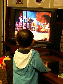 今日図書館の「絵本読み聞かせ」に行ってきましたが羽根くんはやっぱり徘徊しまくってましたそんな羽根くんですが、朝夕2回の教育テレビの幼児向け番組が始まるとテレビの前に釘付けになります(すまんシュタイナー)特にお気に入りなのは「いないいないばぁ」♪グルグルどっかーん♪羽根くんはまだ踊れないのでママが代わりに踊っています(こないだ1回だけ‘グルグル’の真似をしてた!)たまに何かツボにはまるらしく「ゲヘッ」と笑い声をあげてます。(ワンワンが忍者になって手裏剣投げるのがツボらしい)その後のプチアニメは羽根くん興味のあるのと無いのとがあるみたい。ちなみにママは「スキマの国のポルタ」がお気に入り。(「声のいい男は得だ」と何かで読んだけど 吉岡秀隆のナレーションは何故か心地よい) それから「おかあさんといっしょ」これは対象年齢がもう少し上だと思うんだけどオープニングが始まるとまたテレビの前にやってきます。でもおにいさんとおねえさんには興味ないみたい(笑)ゆうぞうおにいさんが劇団四季出身だそうで、しょうこおねえさんは元タカラジェンヌで「ベルバラ」のエトワール(フィナーレで歌の上手い人がもらえるソロ)を歌ったことがあるんだとかへぇ~。その後の短い番組内の「かおのたいそう」コーナーに的場浩一が出てたのにはビックリ(ちょっと可愛かったが)でも最近ベッキーに変わっちゃってそれ見て羽根くん大泣き!まぁ生首状態のベッキーが目を見開いたり笑ったりしてるから怖いといえば怖い(苦笑)で、ママのお気に入りはその後の「にほんごであそぼ」これって誰を対象に作られてる番組なんだろう???出演者の幼児が「祇園精舎の鐘の声…」とか暗唱してるし、「今日の名文」で有島武郎とか。国文科出のママも知らないよ(笑)。「働けど働けど我が暮らし楽にならざり じっと手をみる」を三味線&謡い手さんがやったときは羽根くん泣いてた(笑)怖いよね。そして野村萬斎が妙~なテンションで踊ってるのがママ的にはツボ野村萬斎には一時期「陰陽師」でハマッて(笑)狂言も1回観に行ったことがあります(狂言って結構面白かった!)さらにエンディングの♪でんでらりゅうば~♪最初なんじゃこりゃ~?って思ってたけど気付いたら家事をしながら「でんでられんけん~♪」と口ずさみさらに振り付けを覚えようとしている私がいた(笑)ここまでざっと1時間。結構ママが楽しみにしてるかも。