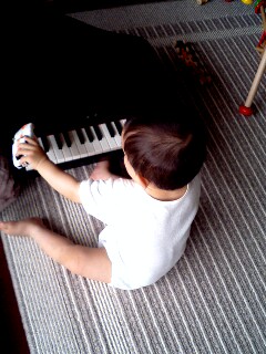保育園の給食見学がありました。1歳4ヶ月の女の子はもうスプーンで食べてた!(床にこぼし放題でしたが)でも「保育園だと周りの子に刺激されて 上手く出来たりするしね」との保育士さんの言葉にママさん達みんなホッとした様子。その後「後期・完了期」の給食の試食。食パンは4分の1サイズで耳付き!羽根くんに渡してみたら上手に持って食べることを発見 でもにんじん・胡瓜のスティックは口に入れてすぐポイッまぁあんまり美味しくないもんね…。あまり手づかみ食べをしなかった羽根くんだけどベビー煎餅は上手に持ってバリバリ食べる。それじゃ大好物のバナナは、とスティック状にしてみたらこれまた必死で手づかみして食べる。で、最近は食パン、うどんも手づかみするようになった!さらに保育士さんに「ストローよりコップの練習を」と言われてお茶をコップで飲ませるように練習中なんだけどほとんどこぼれてしまって上手く飲めない本人も上手く出来ないと嫌になるみたいで「もういらないっ」と拒否する始末。この季節、水分補給は欠かせないし、と結局ストロー。ところが昨日ミルクをコップで与えてみたところミルク大好き羽根くんは必死で飲もうとする。その内飲みたいもんだからコツをつかんでだんだん上手に飲めるようになってきた!好きこそものの上手なれとはよく言ったもんだねぇ。それでも相変わらずの「星一徹」・・・ガッシャーンもしくは「室伏広治」・・・投げるわ投げるわ保育士さんに「気長に気長に」と言われたよ。さて前回にひきつづき羽根くんのピアノの上達ぶりを公開ミニカーで弾いてますおい・・・よく出来ました・・・>さっちん.さん、近藤正臣はピアノの上に立ってましたか?