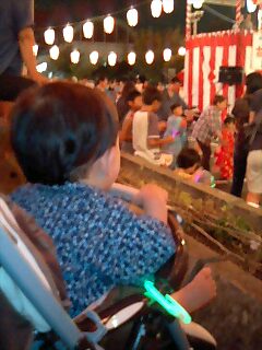 ママの体調がイマイチだったのでのんびりオフの1日。ママがソファーで横になっていたら羽根くんソファーの周りをウロウロ。気になるみたい。そしてとうとうソファーによじ登り、ママのお腹の上に顔を乗せて寝てしまいました・・・ちょうどお腹が痛かったママは羽根くんの重みが心地よく一緒にねんね。何だか幸せそして夜は近所の盆踊りに初めて見る盆踊りに羽根くん興奮手を叩いて喜んでいました。パパとママは焼き鳥&ビールママも卒乳したからビール飲めるんだよねー。もともとあまりお酒は飲まない私なんだけど晴れて解禁!となると美味しく感じるわぁ。