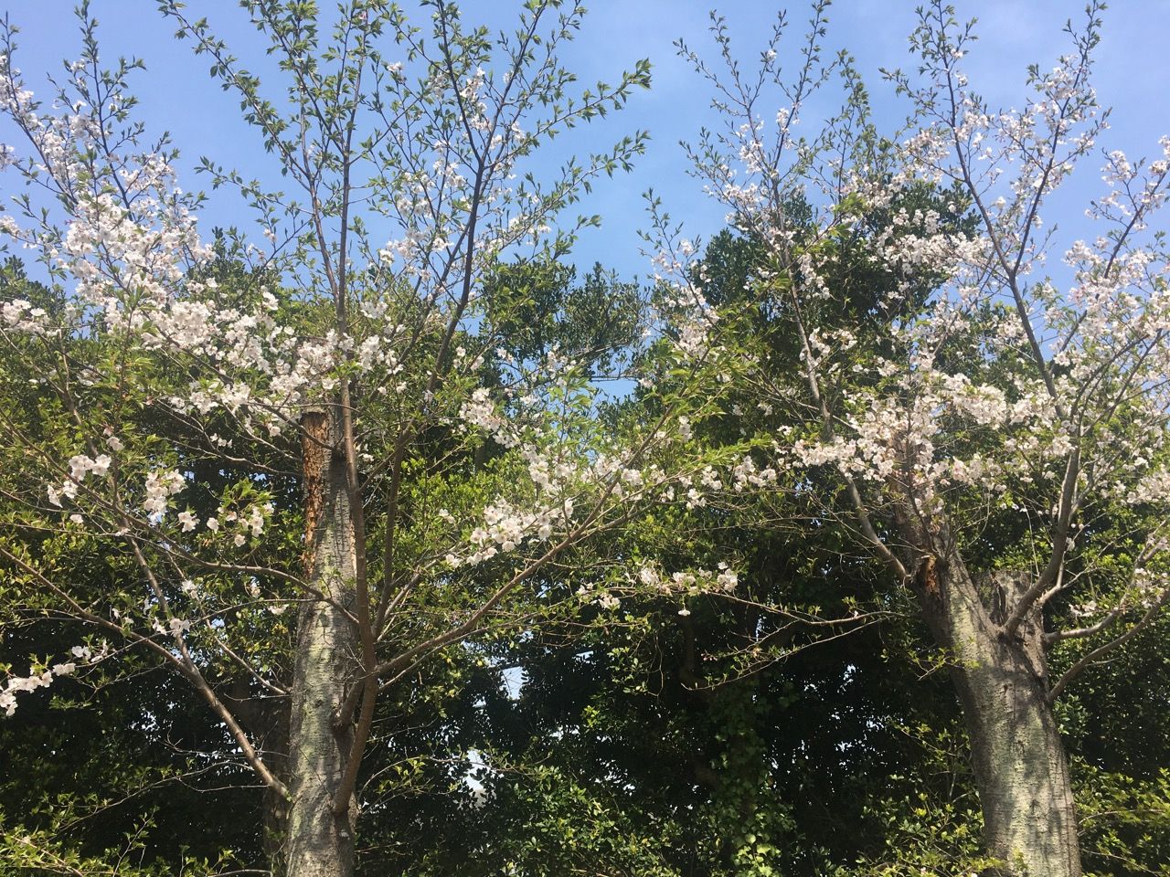孫4が勉強を始めた間に掃除機をかけてまわりトイレ掃除も念入りにすませ10時半近く飲み物やおやつ、ビニールの手袋、スーパーの袋を持って3人で三が岡に向かいました今日はあじさい公園にたどり着くまでに息切れし山に入るときに自由に使っていい杖を1本借りて階段を登って行きしばらくして目的のツワブキを見つけては袋にいれて何度も立ち止まったり進んだりするうちに息切れも収まり今日はてっぺんまで登れる!と思ったら最後の急階段で階段の修理中!当然通行止のため引き返す事にあじさい公園で(以前は回れた)行き止まりの所に入りベンチに座って花見をしながら持って来たりんごジュース等で水分補給チョコレートで糖分補給をして帰って来ましたちょっと寂しい花付きの山桜