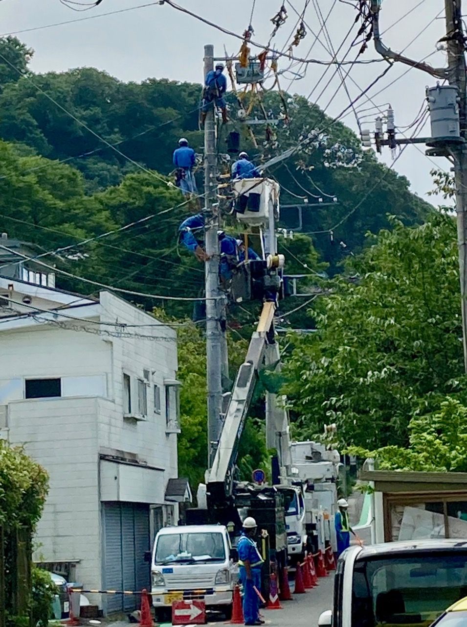 今朝は7時に本家に行きおばぁちゃん起こして戻る朝の雑用を終え8時半にもう一度本家に行くと電柱に6人もの作業員が乗って電柱の架け替え工事を行っていた先月初旬に工事をしていたけれどコロナのせいだったのか他で忙しかったのかずっと中断したままになっていた朝から夕方まで作業が続きカラスもリスも今日は近づけなかったね