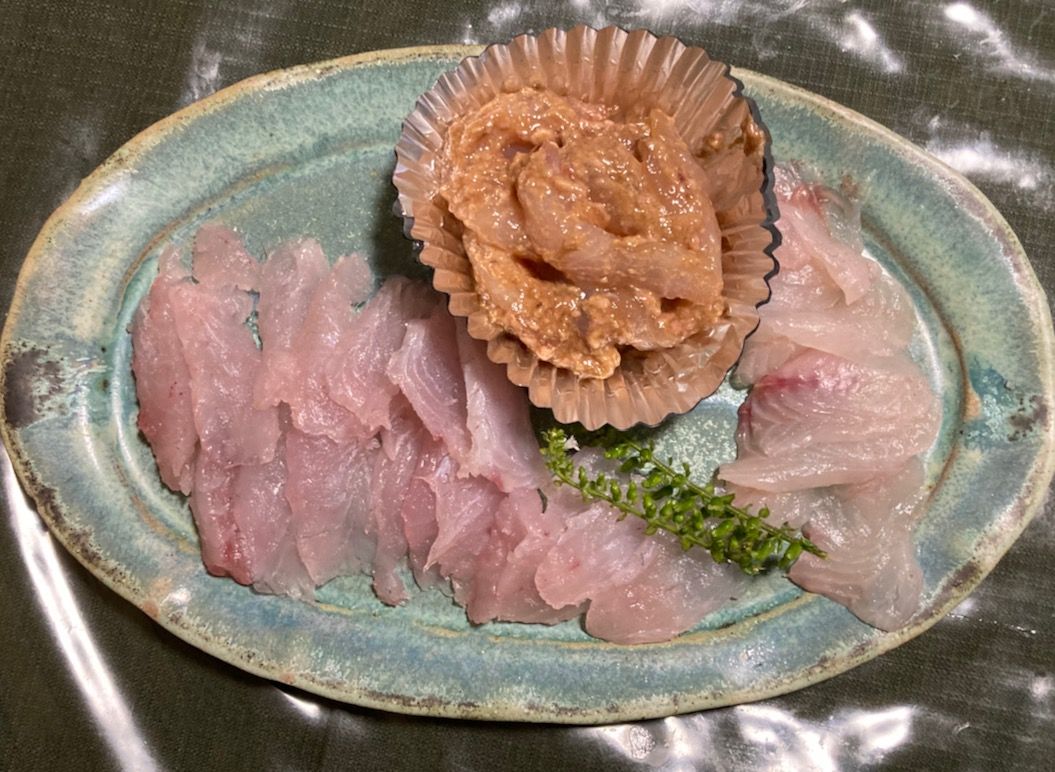 昨日いただいた魚今夜刺身にしていただきましたとりあえず本家にマゴチ(左下)ホウボウ(右)カワハギの肝和え(上)を潮汁と一緒にお届けマゴチは明日くらいの方が旨いかな?!まだちょっとコリコリしていましたホウボウの方が甘みが強かったカワハギは無言になりましたやっぱり肝和えうま〜〜〜〜〜い!!!!なんとも贅沢なご馳走でした