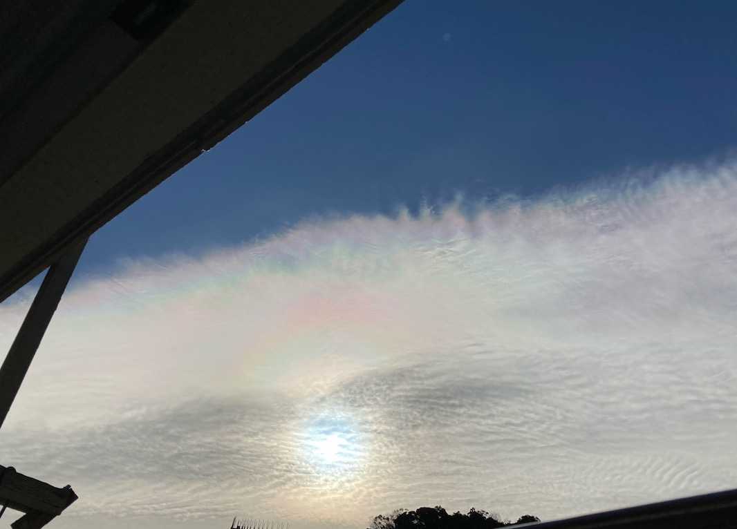 おばぁちゃんを起こしに行った後そのまま台所に立ちシンク上の窓を外して掃除を!夫の座る後ろの小窓も外して掃除そして大きな窓の掃除を始めると最初サッシの下をブラシで磨いている時には気づかなかったけれど窓を下から上に拭き始めた時に雲が虹色になっているのを見つけ思わずいいことありそうで写真を!さっき調べたら環天頂アークというらしい大窓全部吹き終えるまで結構長い時間うっすらとはしてきたけれど見えていたな〜んか幸せな気持ちになれたね!