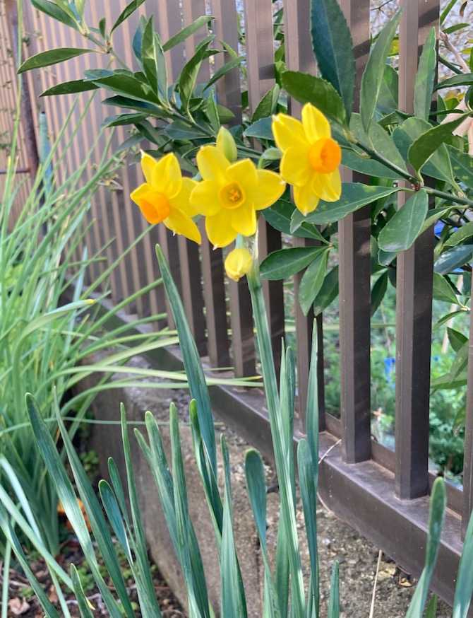 今日は家の用事を終えた後頑張って庭で作業を!もう朝から結構風が吹いていて鶏糞を撒くと飛び散りそうなのでそっと撒き撒いた所をまた天地返しをしていきあとひと息の所まで頑張って午前中を終えるまだまだ端の方からは畑ニラやドクダミの根が嫌という程出てくる見える限り綺麗に取り除きまたゴミ袋2つに!戻るともう11時半近くになっていたので午前中のお茶はパスして昼の支度にとりかかる午後からまた最後に残した一寸の所に鶏糞牛糞を撒き余計な根を取りながら天地返し!今日生協でズッキーニのタネが届いて来たのでそれを植える所も決めてそこにも牛糞鶏糞を入れて天地返しをしておく家に戻る時に黄水仙で癒されるが昨年は2本咲いてくれたのに今年は1本しか出てくれず寂しく咲いている