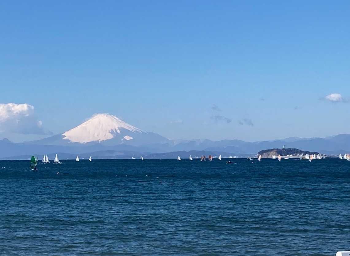 昨日草ゴミを入れるのに袋を使ってしまったため午前中またドラッグストアーに散歩がてら行く途中産気橋の上で丹沢がいつもよりはっきり見えていたので富士山を見て見るとちょっとうっすら雲がかかっているが下の方はくっきり!なので店に入る前に海まで出て見るとやっぱり綺麗!ヨットがレースでもしているのか沢山出ていました〜