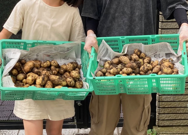 朝の雑多な用事を終え孫4が来る前に!と薄焼き卵を焼き野菜等を切って昼の仕込みをしておき10時には来られるか?とラインを送ると来ると言うのでしっかり支度をして10時前に庭に出て芋の周りの雑草を取っていると孫4登場!毎年やっているので何の説明もなく私が掘り起こすとすぐに来て芋を取り出していく10本くらい掘り起こしたか?枯れた茎のものを掘り出すじゃがいも今年は実が沢山ついてしまっていて出来が悪いだろうと話して置いたけれど本当に小さい残りの(まだ今花が咲いている)ものは少し大きくなってくれると良いけれど・・・気を取り直して一休みし昼の支度・・・と思ったら孫が帰ると言うのでジジが昼食べて行きなよ〜冷やし中華だよ!と言ったらえ〜〜〜っそれは食べて行かなくちゃぁ孫の大好物なのです午後2時過ぎに歯医者さんの予約があると言うので食後休む暇なく“食い逃げ〜”と言って帰っていく大きめのじゃがいも一袋持たせる夕方小さいのを拾い出し炒め煮に!と炒めて煮始めるとピンポ〜ン!畑を貸している釣り仲間が芋掘ったぞ!と大きなじゃがいも含め袋1杯届けにきてくれるこの大きなのは種類が違うとか早速大きいのはふかし芋にしてバターで頂く事に!