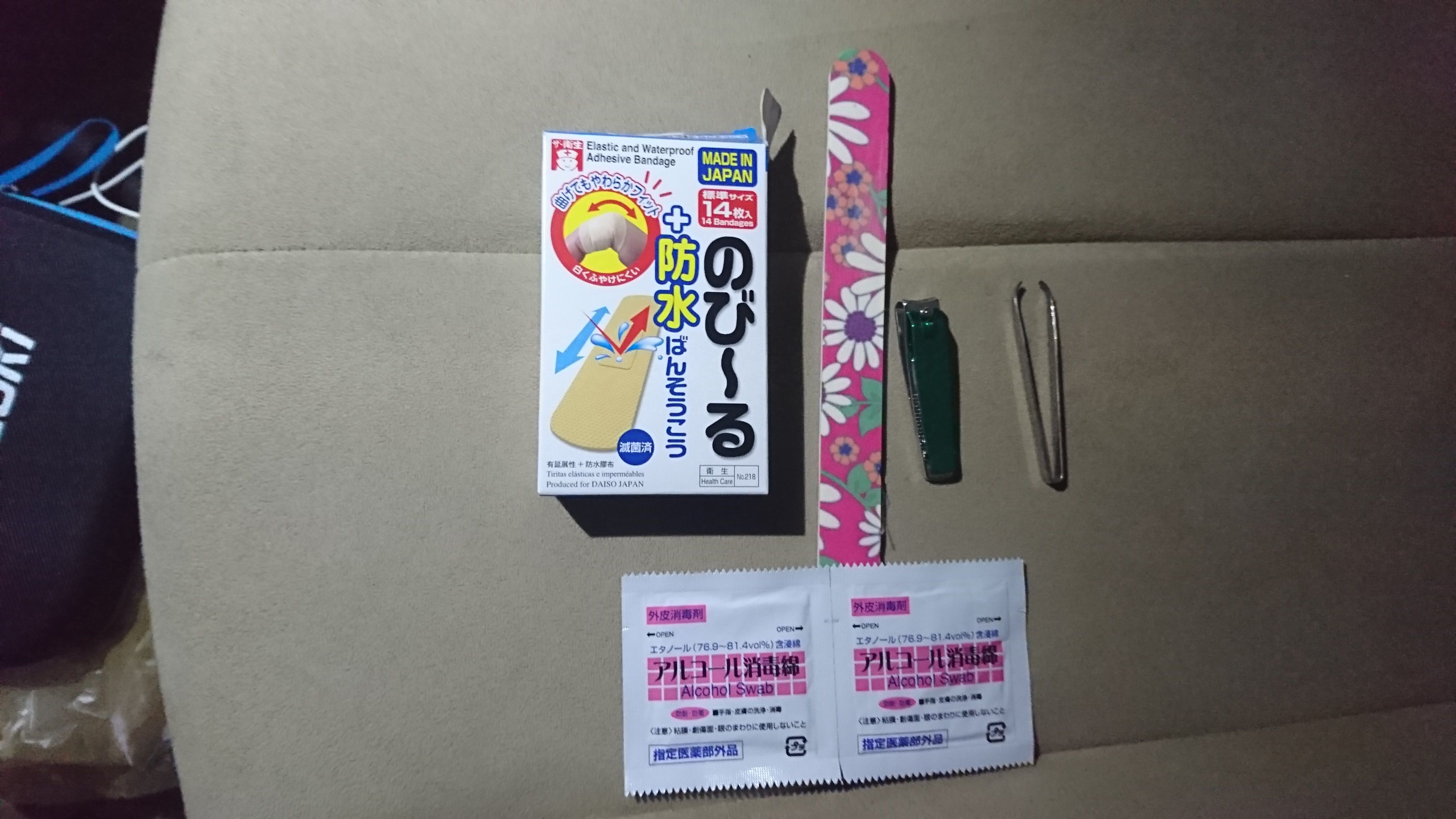 いつも車に置いているものですが、さっき紹介したアルコール消毒綿に防水の絆創膏