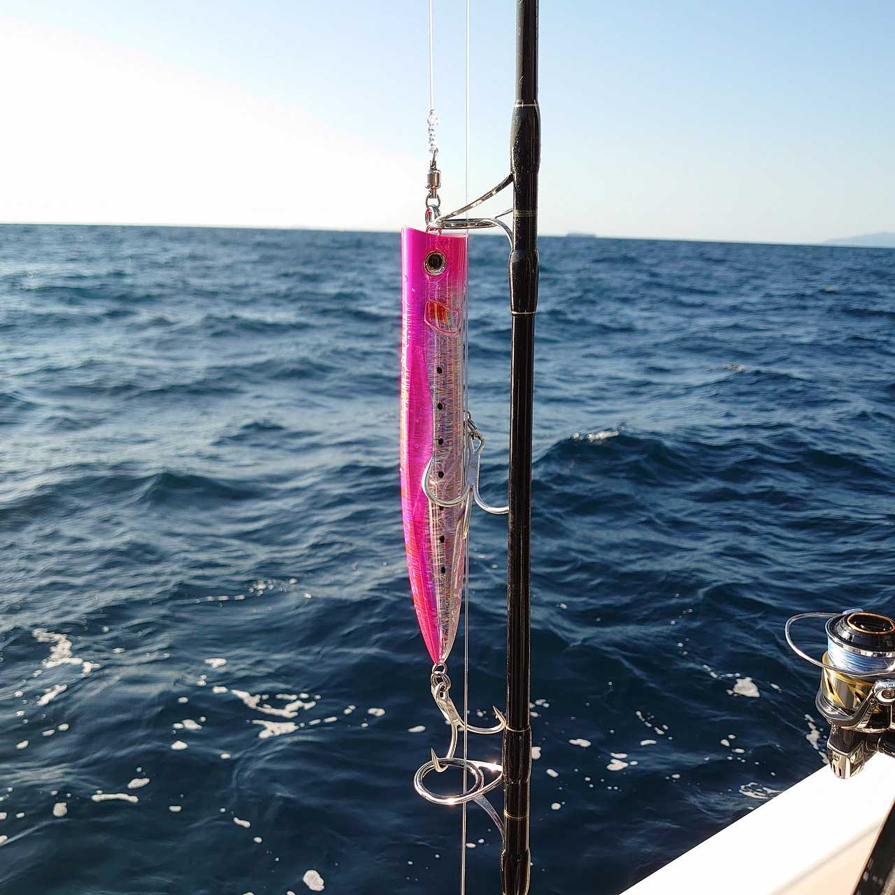 と、言うのも、他の釣りはやったことがあっても、オフショアキャスティングのマグロ釣りをわからないで色々やると他のお客さんに迷惑が掛かったり、本気で怪我したりさせたり、一つのナブラで何本もかけられるのに1本で終わってしまったりと、後々悔やんでも悔やみきれないこともありますからね!